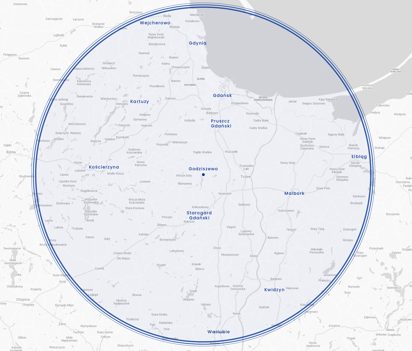 Świadczymy usługi transportowe, sprzedaż kruszyw i prace ziemne na terenie województwa pomorskiego. Główny obszar naszej działalności to powiaty starogardzki, tczewski i gdański. Dostosowując się do potrzeb klientów obsługujemy również zlecenia na bardziej odległych trasach.